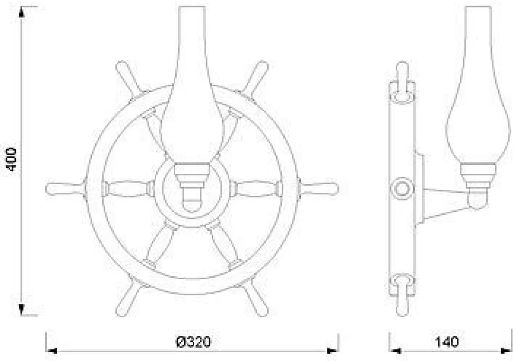 Das glänzende Gestell ist einem Steuerrad nachempfunden und macht aus der Wandlampe ein absolutes Deko-Highlight.