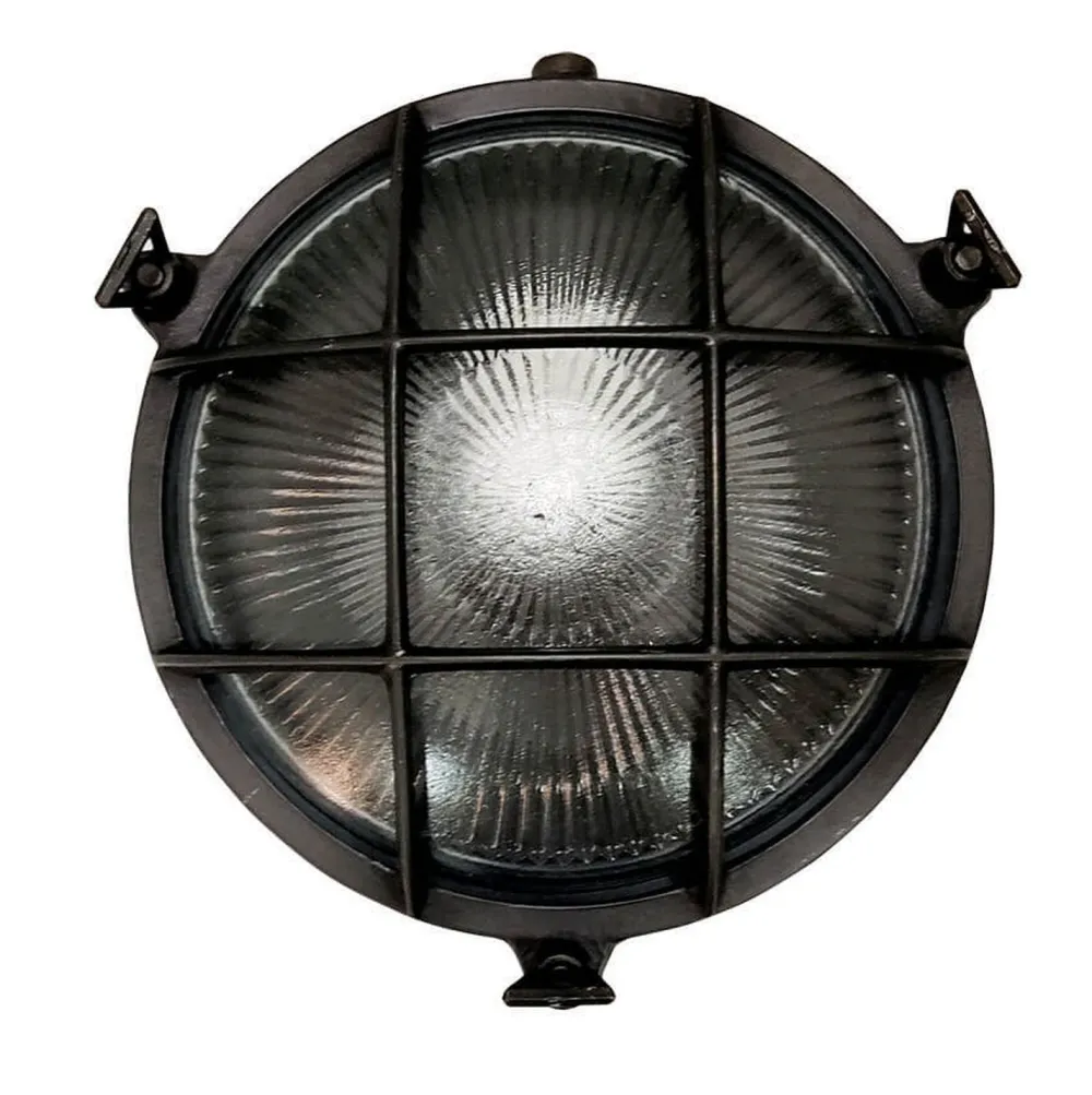 Maritime Außenwandlampe aus massivem Messing im Stil eines antiken Bullauges
