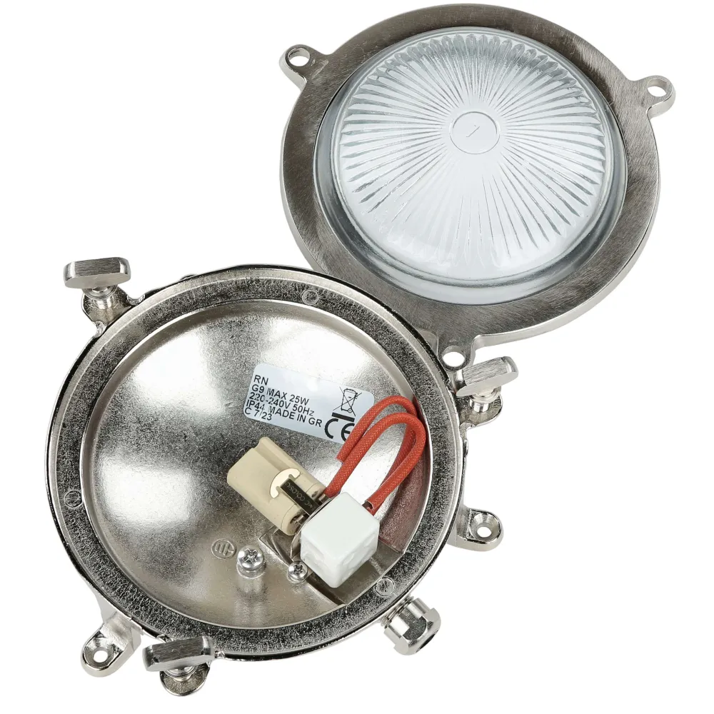 Maritime Außenwandlampe aus massivem Messing im Stil eines antiken Bullauges