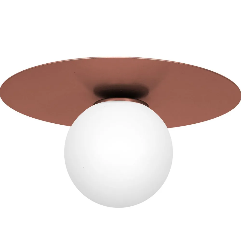 Zeitlose Deckenleuchte aus lackiertem Stahl und Glas in Kupfer und Weiß