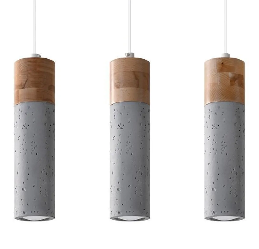 Die Hängelampe ist dank der Kombination aus Holz und Beton ein wohnlicher Lichtbringer, der ideal in Küche, Esszimmer und Wohnzimmer passt
