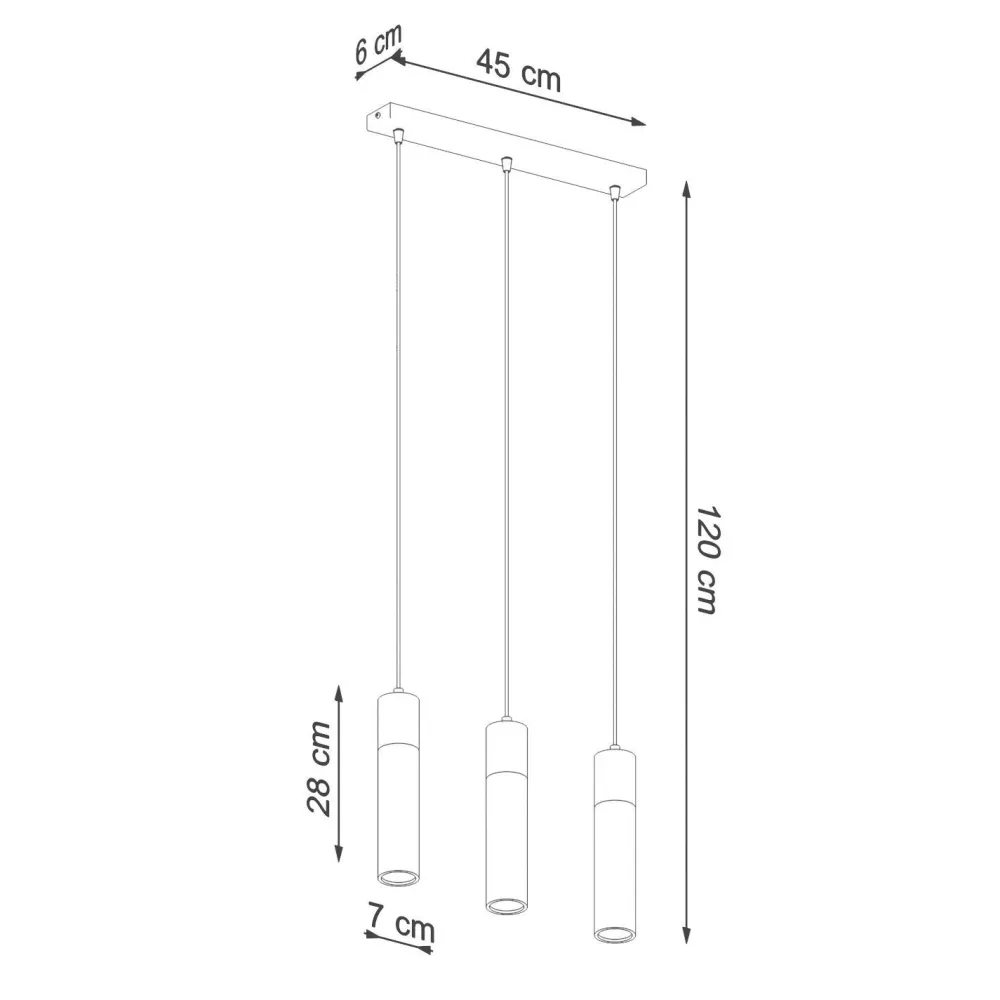 | Maße: | Breite: 60 mm | Hängetiefe: 1200 mm | Länge: 450 mm | Durchmesser Schirm: 70 mm | Höhe Schirm: 280 mm | Durchmesser Sockel/Wandhalterung: 70 mm |