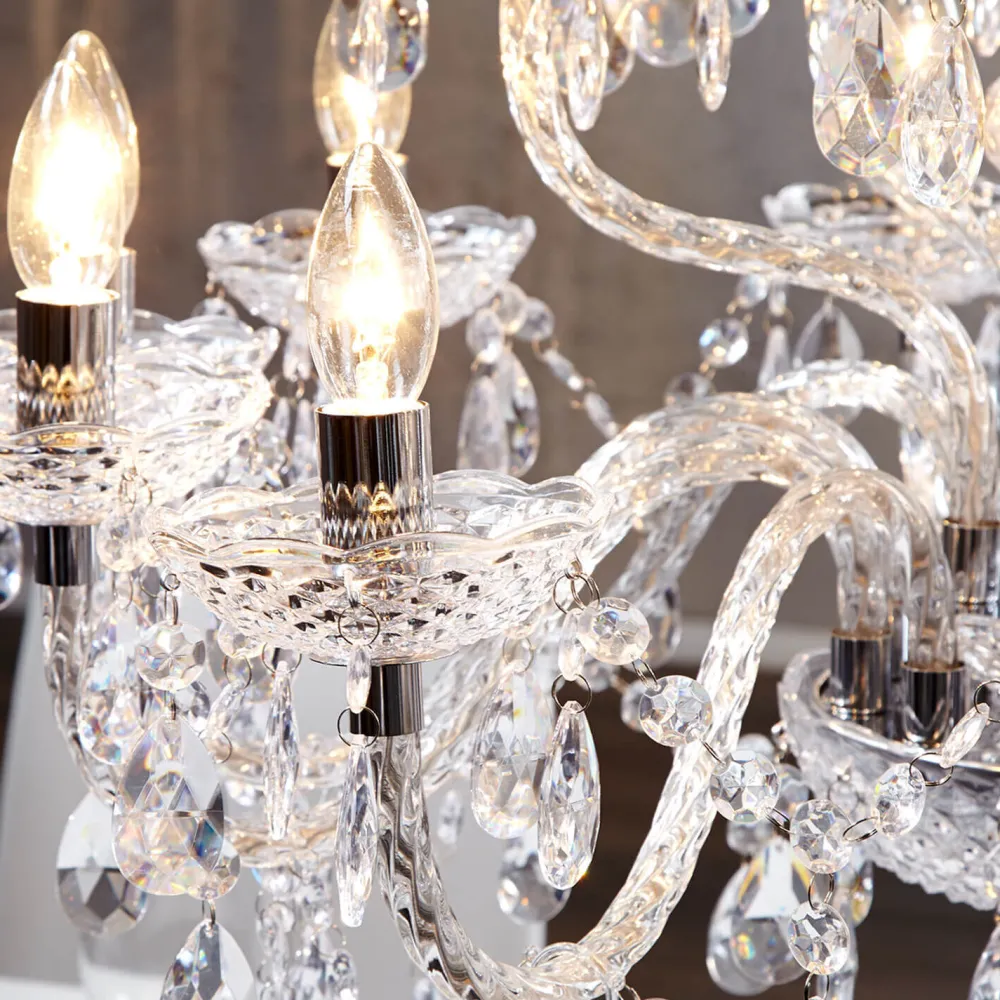 Prächtige Kristall-Applikationen aus Acryl, die das Licht brechen und den Kronleuchter funkeln lassen