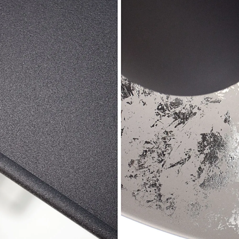 Der besondere Look einsteht durch eine luxuriöse Innenseite in Blattsilber-Optik