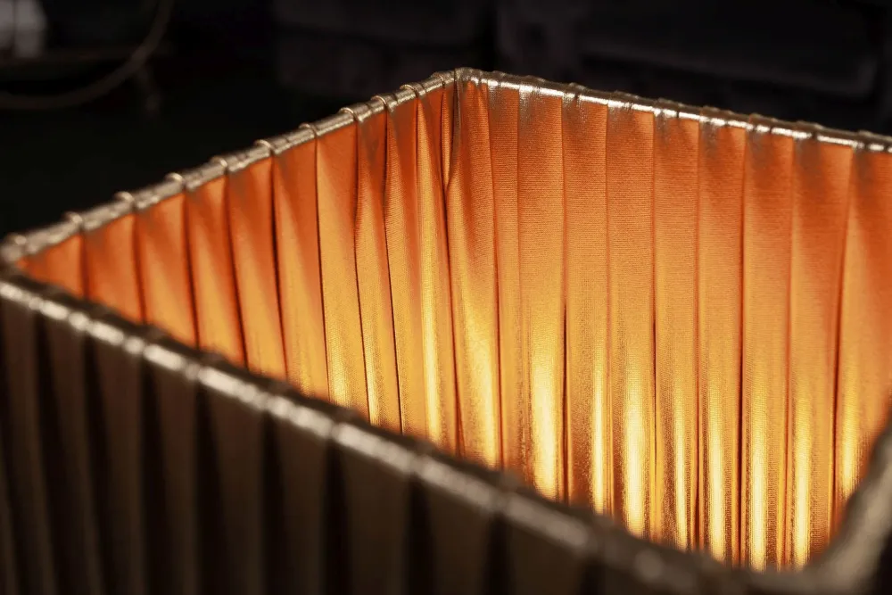 Natürliche Tischlampe aus Metall und Stoff in Gold
