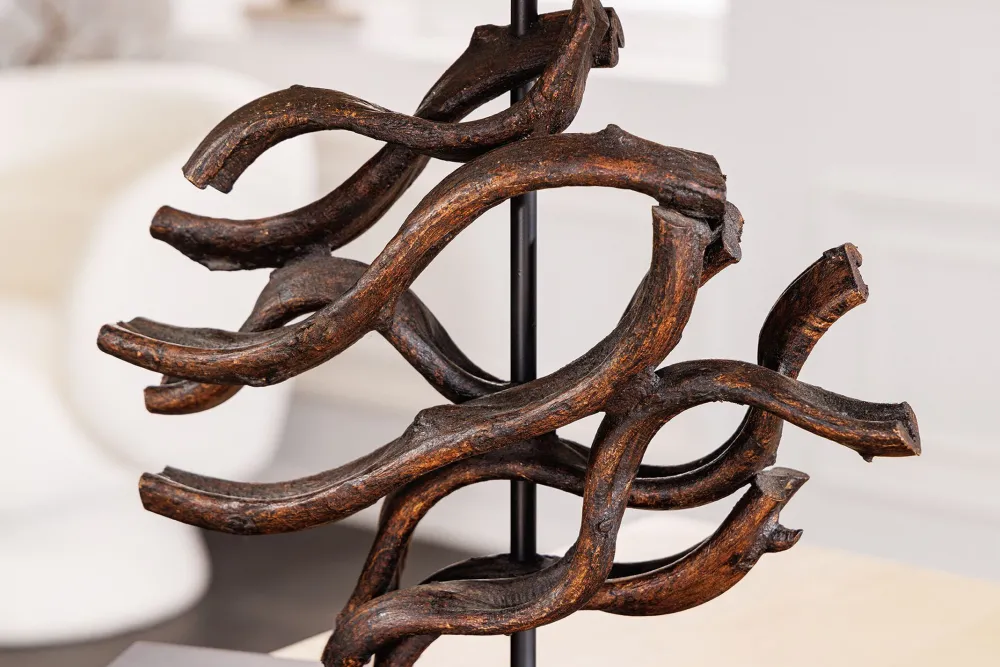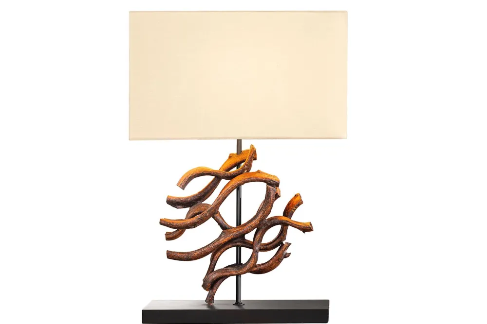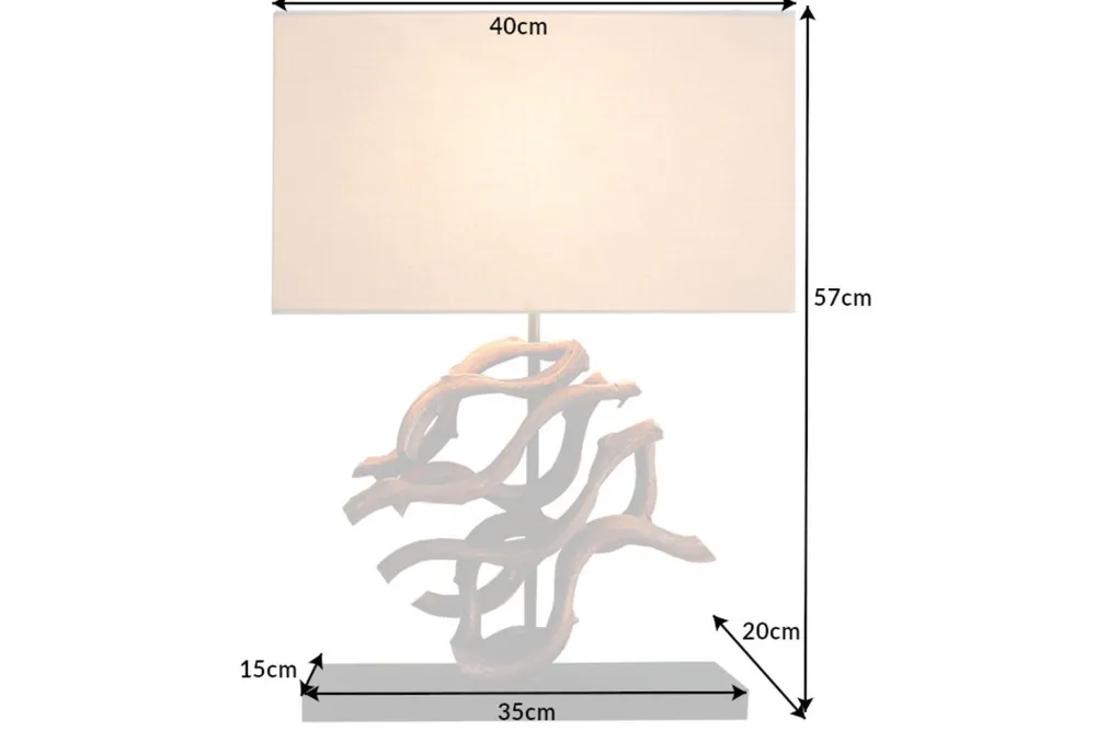 Moderne Tischleuchte aus Teakholz und Stoff in Natur und Beige