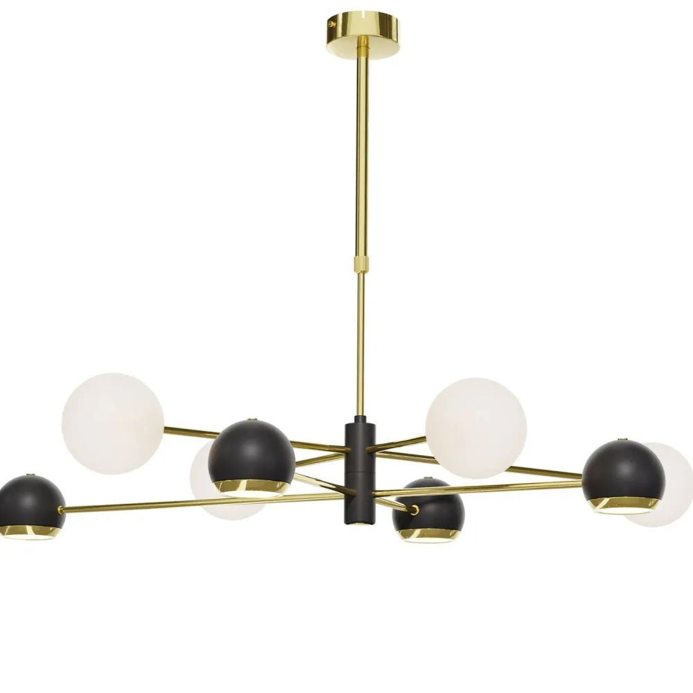 Moderne Deckenleuchte aus Metall und Glas in Gold, Schwarz und Weiß