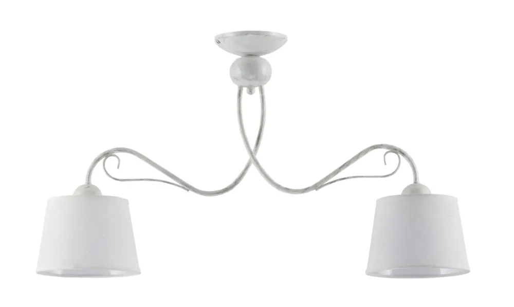 Wohnliche Deckenleuchte mit Stoff Schirm und geschwungenen Armen