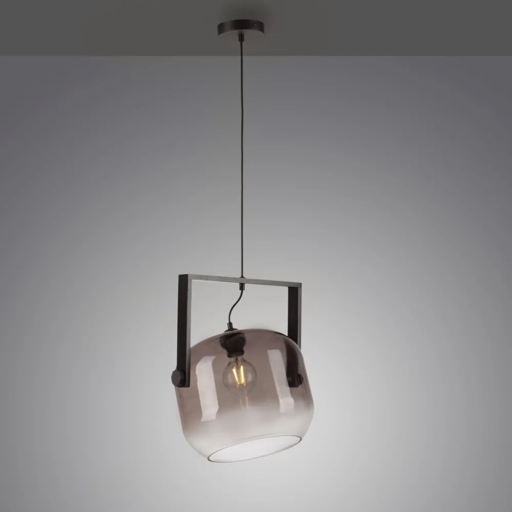 Industrial Pendelleuchte aus Holz und Rauchglas