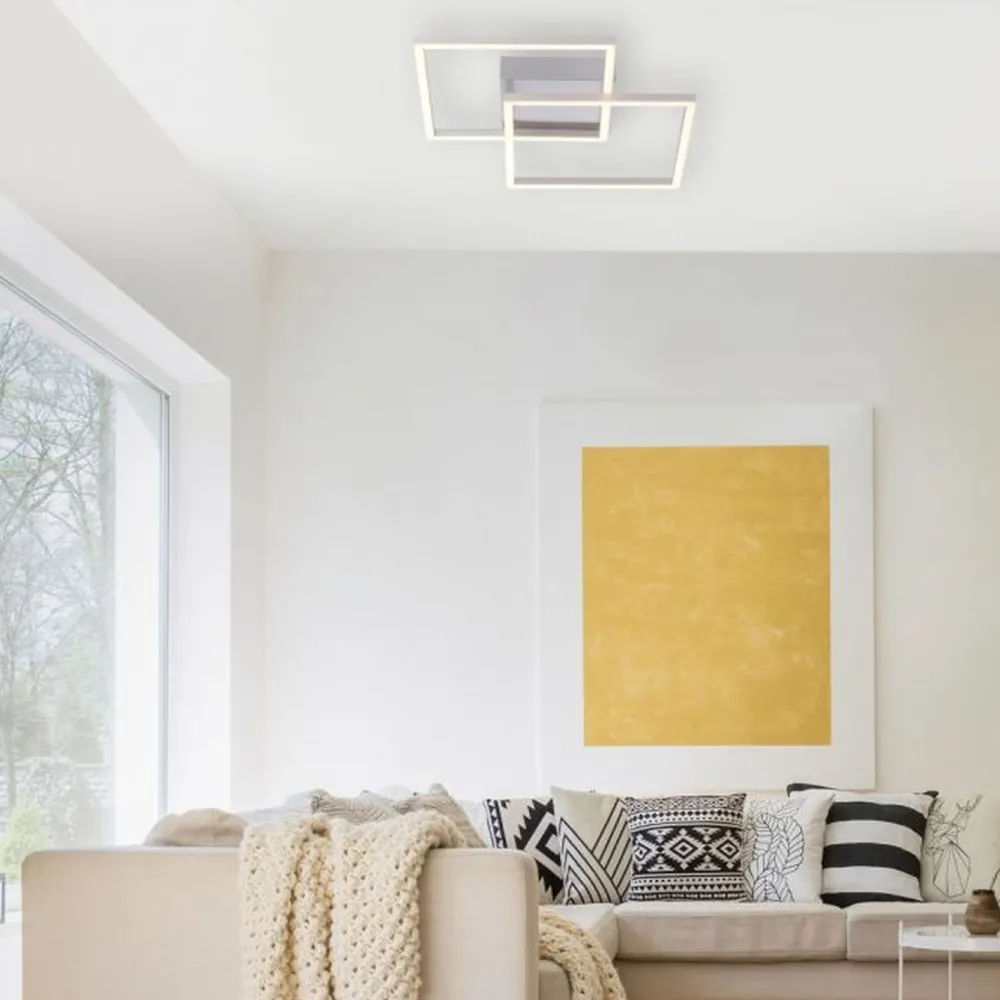 Ein Quadrat ist drehbar, sodass die Form der Deckenleuchte angepasst werden kann