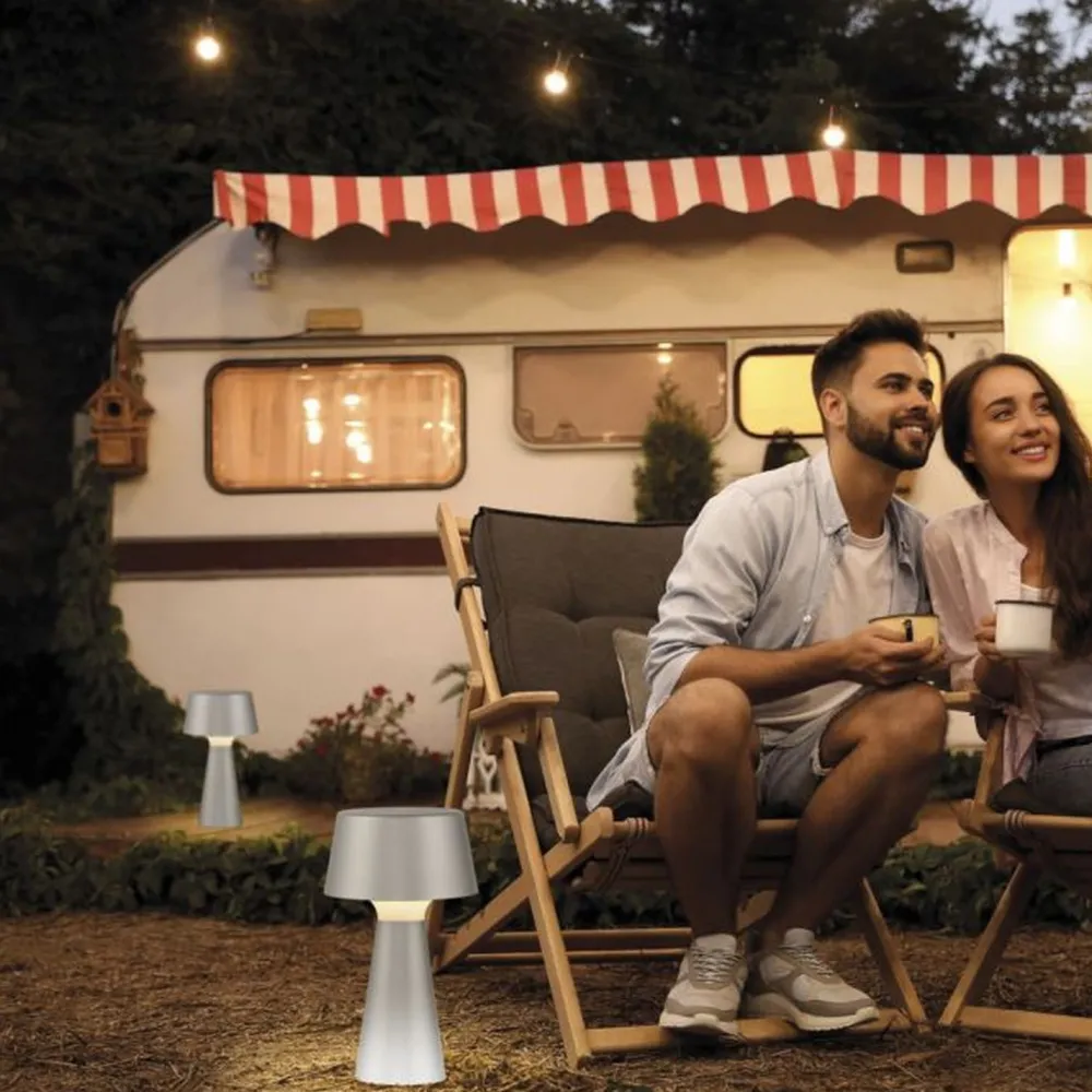 Moderne LED Akku Tischleuchte in Silber