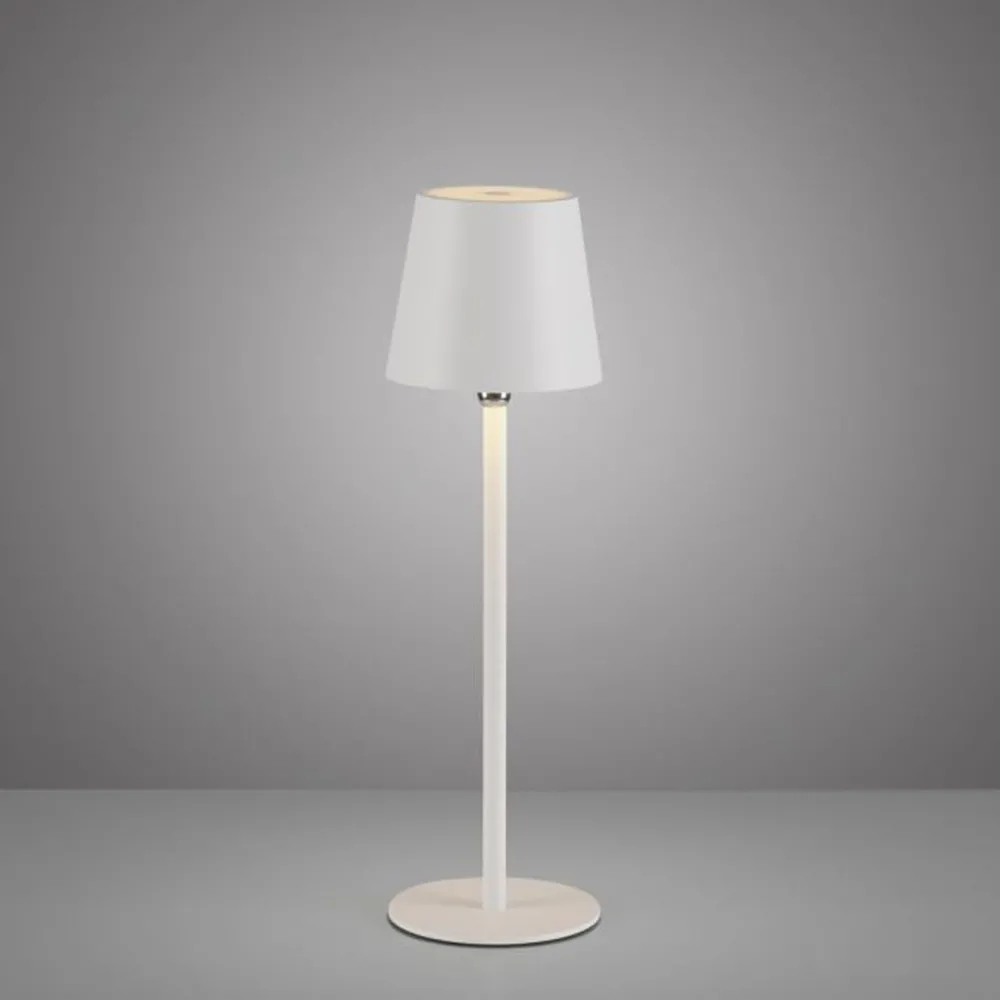 Moderne LED Akku Tischleuchte aus Metall in Weiß
