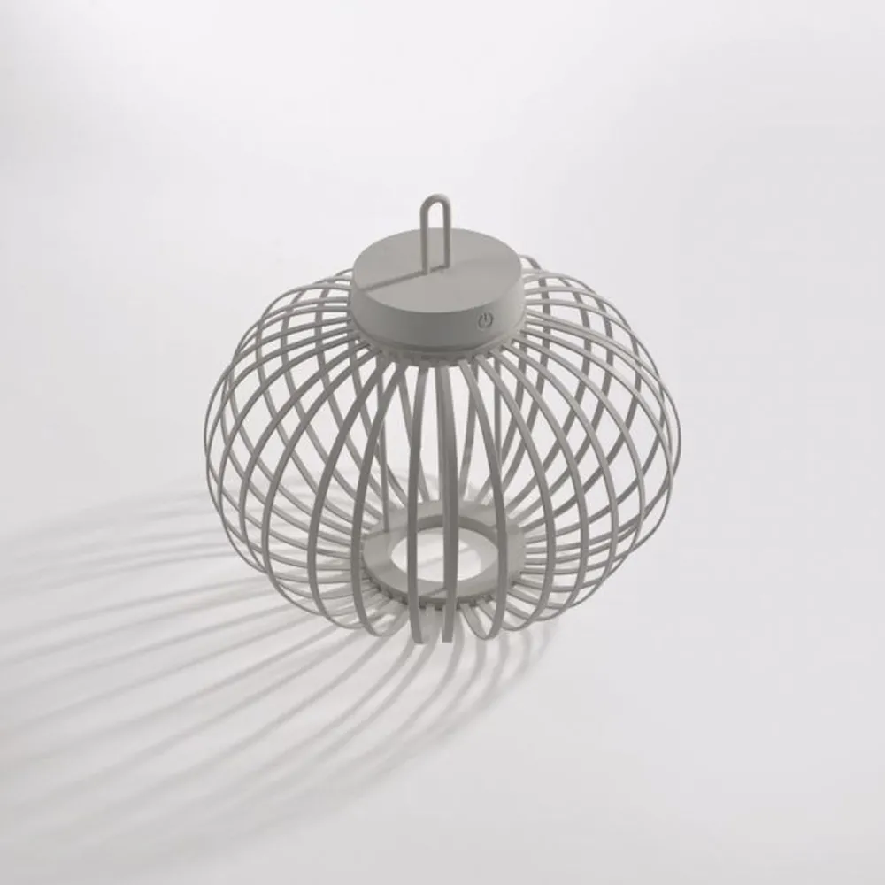 Moderne LED Akku Tischlampe aus Metall in Greige