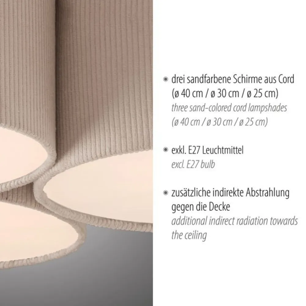 Moderne Deckenleuchte aus Stoff in Schwarz und Beige
