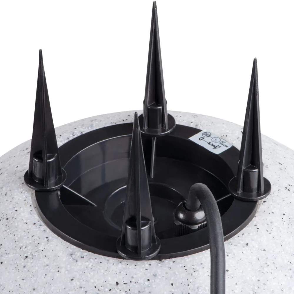 Die Erdnägel erlauben eine einfache Befestigung der Leuchtkugel im Boden