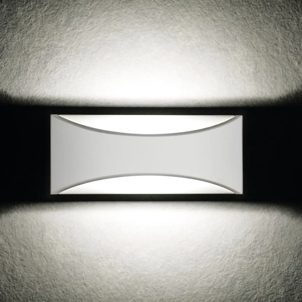 Das Licht scheint nach oben und unten (Up Down Lampe), was für eine indirekte Beleuchtung der Fassade sorgt – ideal für Eingangsbereich, Balkon und Terrasse
