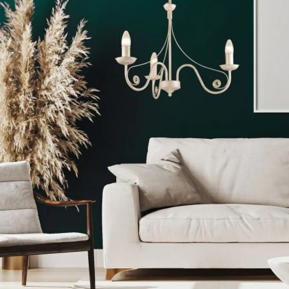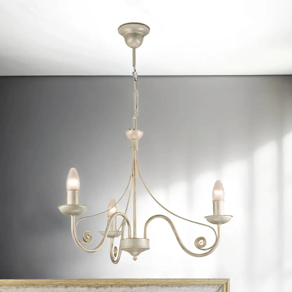 Rustikaler Kronleuchter in Weiß mit 3 Armen