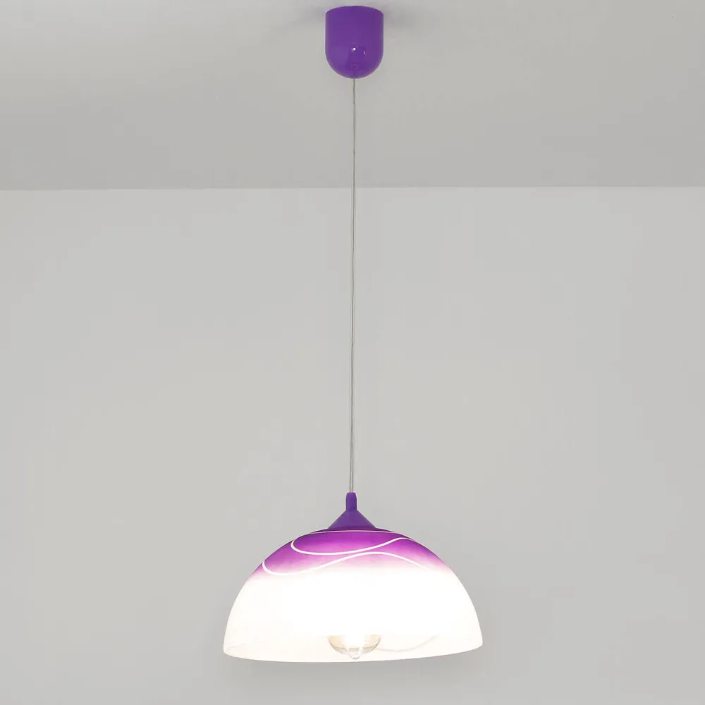 Mit der stilvollen Hängelampe Adania mit Glasschirm in Weiß und Lila sorgen Sie für besondere Lichtakzente in Ihrem Zuhause! Das schlichte Design mit klaren Streifen sowie sparsam eingesetztes kräftiges Lila ist das Highlight in jeder Küche, jedem Esszimmer und über jedem Esstisch. Dank 60cm Hängetiefe kann die Leuchte dabei auch ideal in Räumen mit hohen Decken angebracht werden. Das Licht verteilt sich blendarm für ein wohnliches Ambiente. Adania – Der Inbegriff für elegante Retro-Momente!