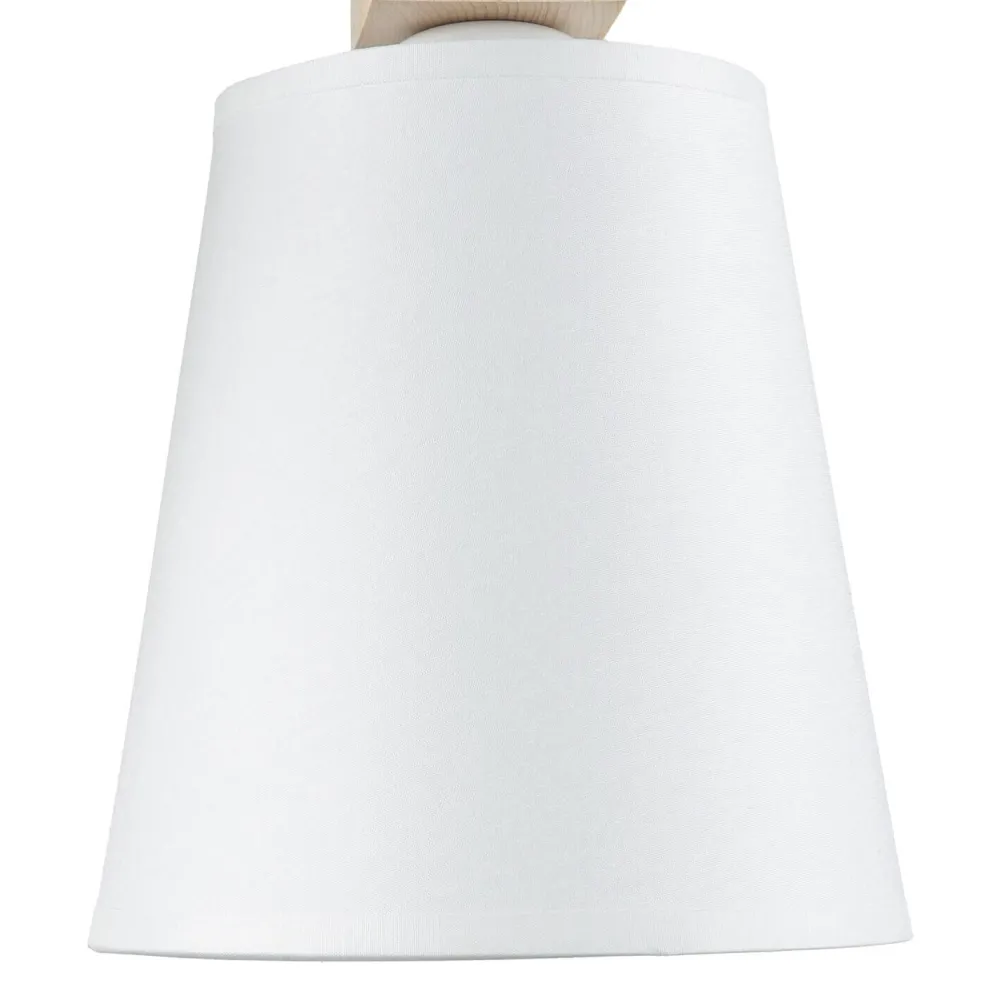 Ansprechender Materialmix von hellem Echtholz und einem leichten Stoffschirm, der perfekt ins Wohnzimmer neben das Sofa oder im Schlafzimmer neben das Bett passt