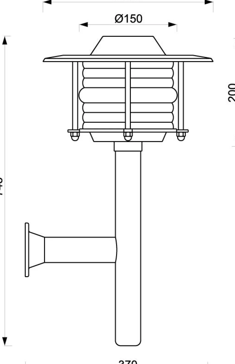 | Maße: | Breite: 260 mm | Höhe: 745 mm | Tiefe: 380 mm | Durchmesser Schirm: 260 mm |
