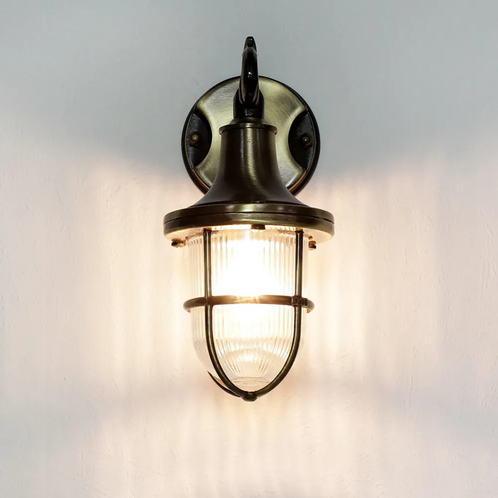 Rustikale Außenwandleuchte aus massivem Messing und Glas