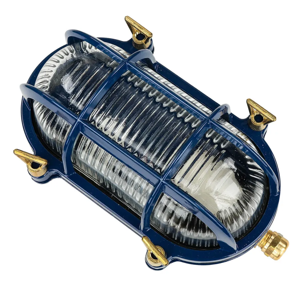 Das nautische Flair erinnert dank Riffelglas und Ziergitter an eine antike Schiffslampe: ein besonderer Blickfang auch im Eingangsbereich