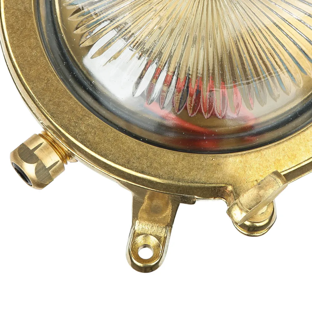 Maritime Außenwandlampe aus massivem Messing im Stil eines antiken Bullauges