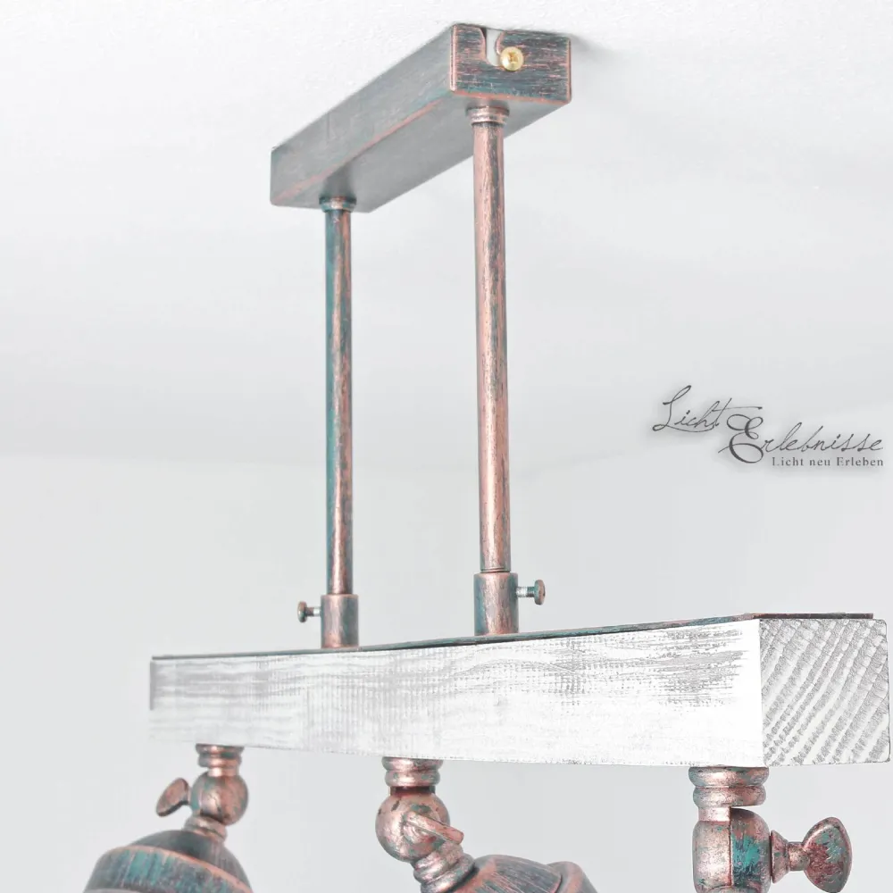 Vintage Deckenstrahler aus Metall und Holz im Shabby Chic für Wohnzimmer, Küche und Flur