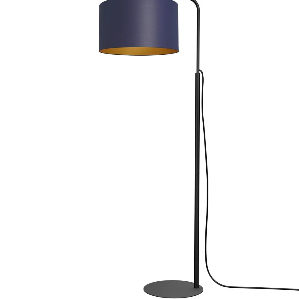 Zeitlose Stehleuchte aus lackiertem Stahl, Stoff und Kunststoff in Blau und Gold