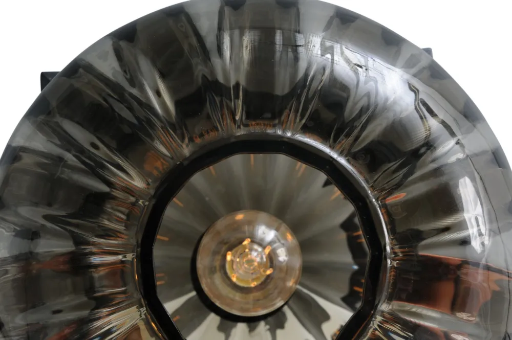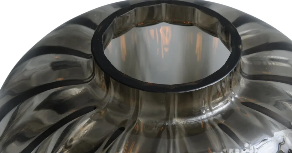 Form und Farbe verleihen dem Glasschirm einen besonderen Look, was aus der Stehlampe einen absoluten Blickfang macht