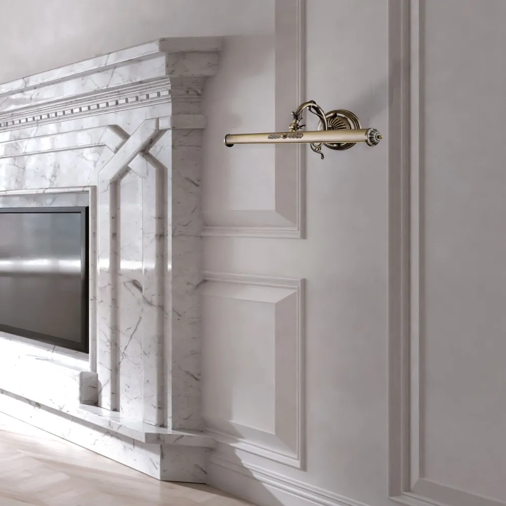Die kunstvoll verzierte Wandlampe setzt Bilder, Gemälde und Andenken dank der verstellbaren Lichtrichtung gekonnt in Szene