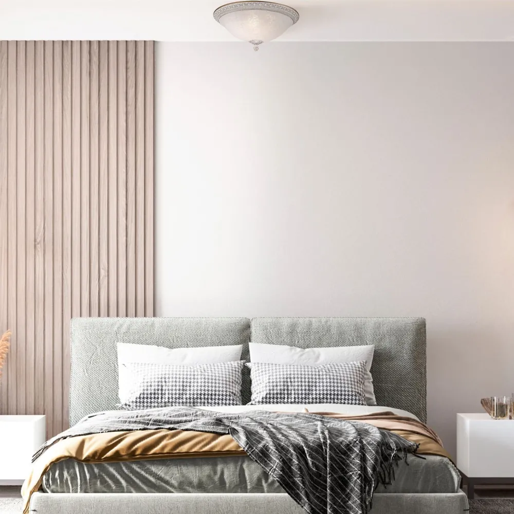 Die floralen Ornamente und das elegante Muster verleihen der Deckenleuchte einen dekorativen Charakter, der ideal in Wohnzimmer, Esszimmer und Küche zur Geltung kommt
