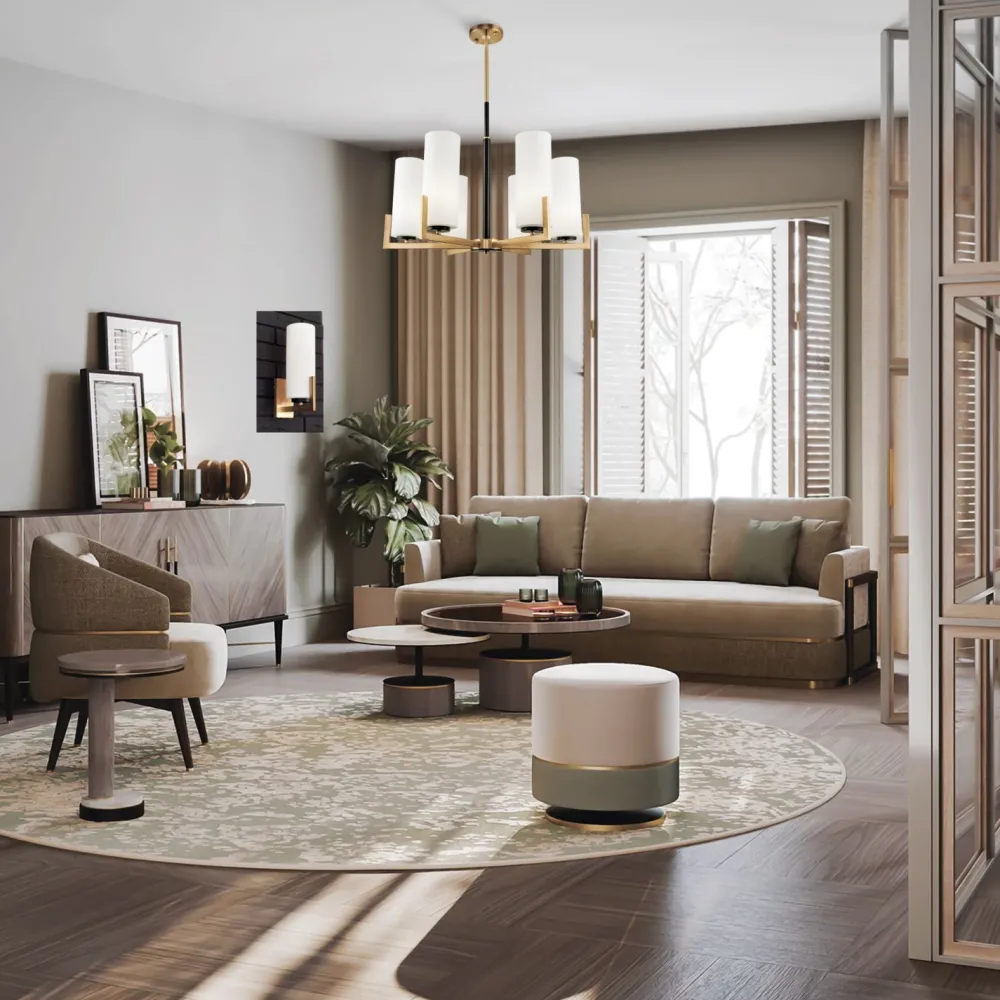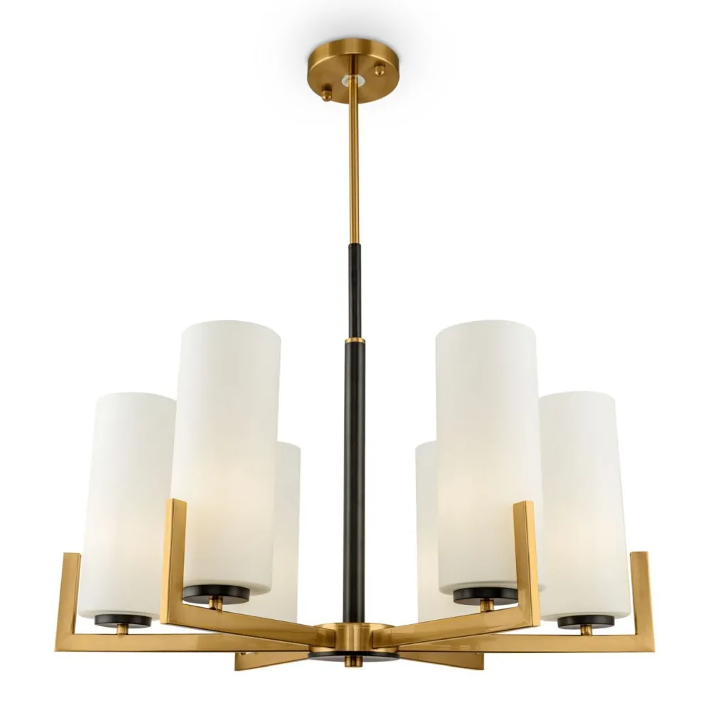 Moderner Kronleuchter mit Lampenschirmen aus satiniertem Glas
