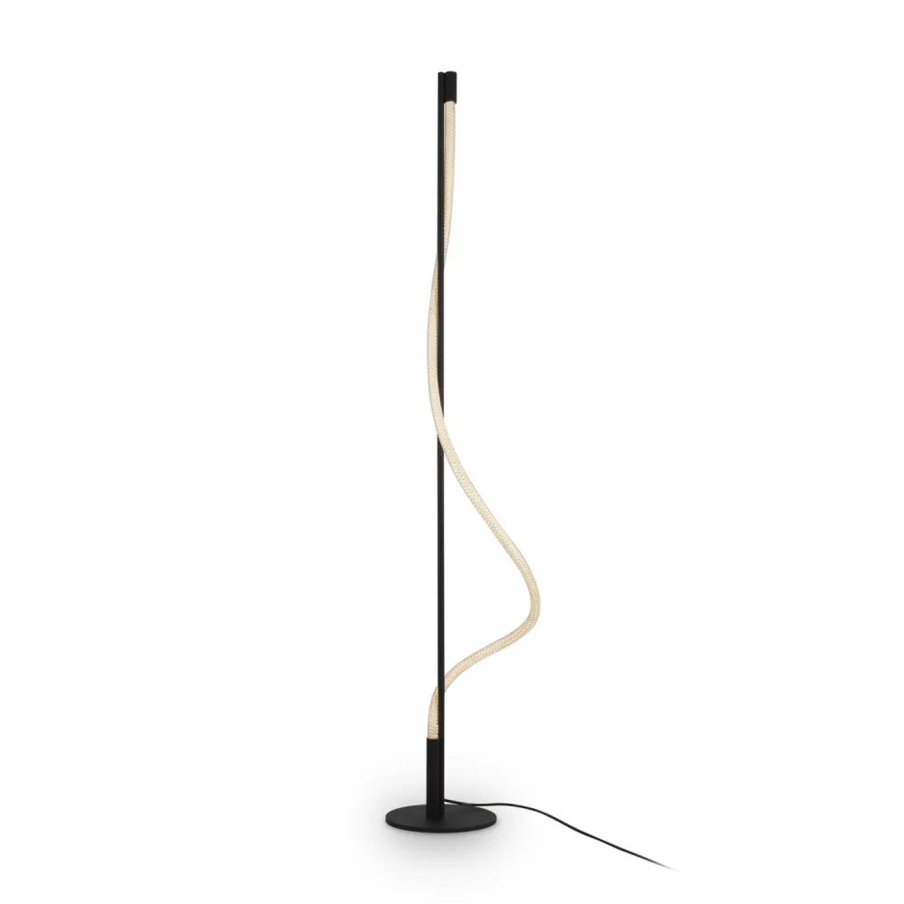 Der geschwungene Lichtschlauch verleiht der Stehlampe einen einzigartigen Look, der sie zu einem dekorativen Blickfang in jedem Wohnzimmer macht