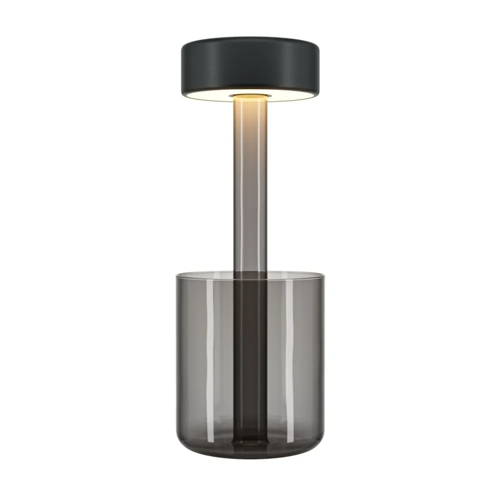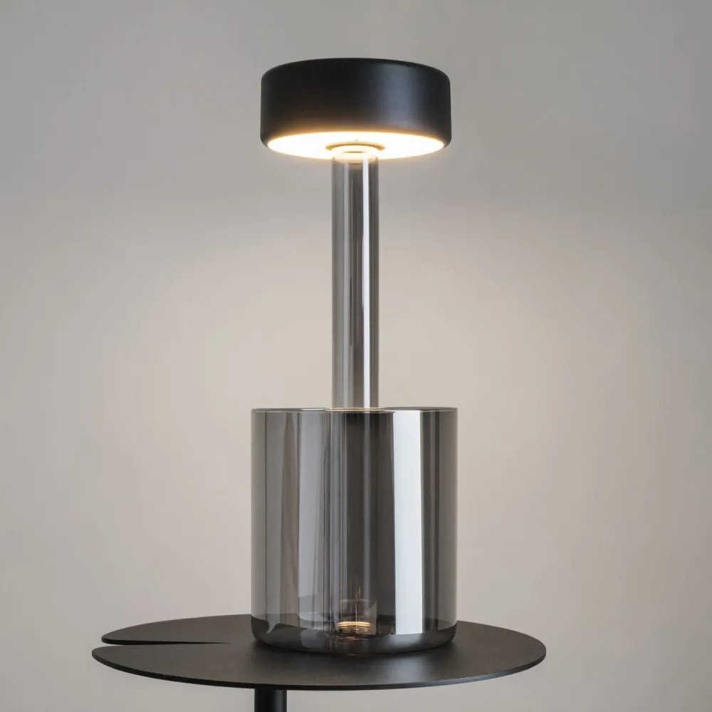 Tragbare LED Akku Tischlampe aus Glas und Metall im modernen Design – keine Kabel, keine Stecker!