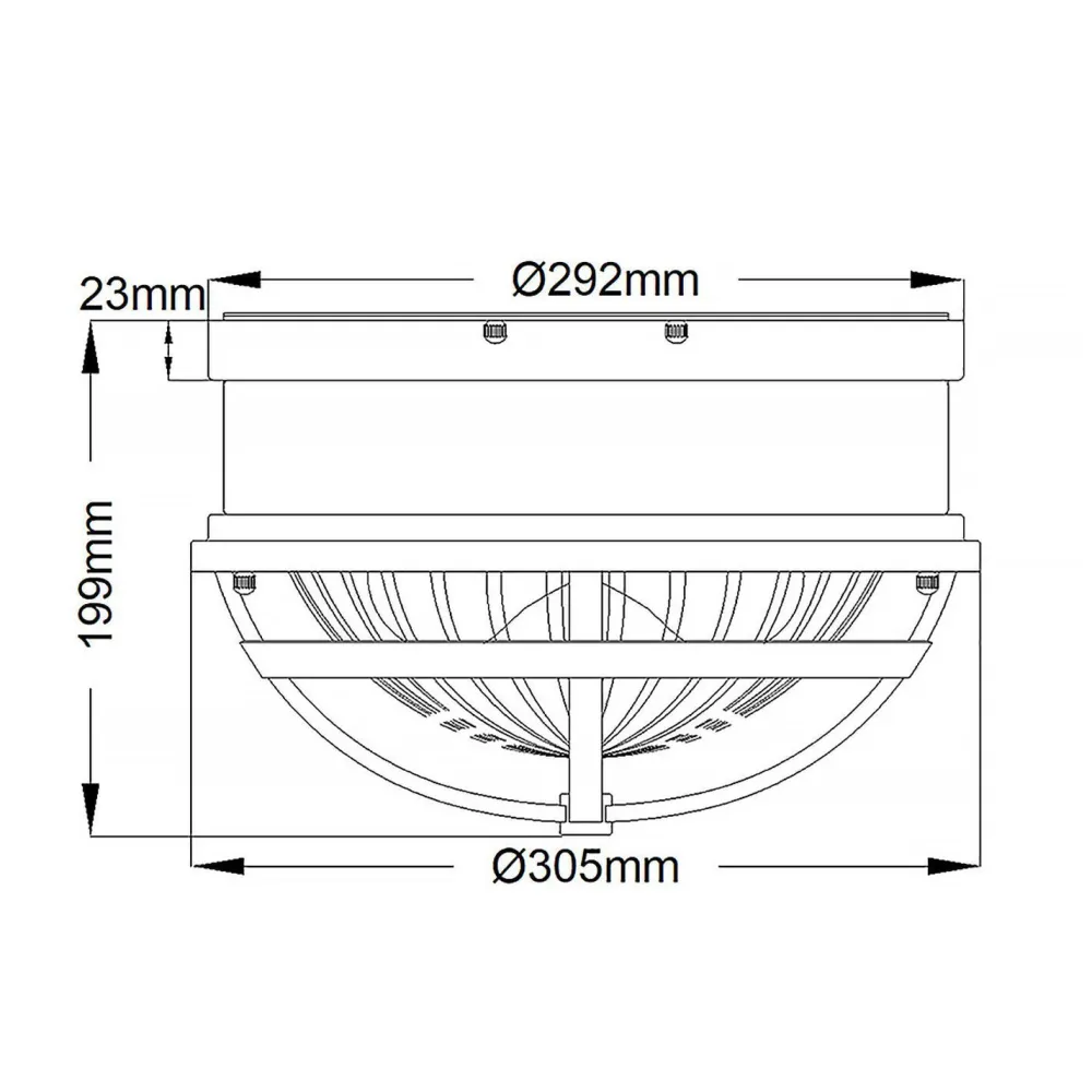 Runde Deckenleuchte aus Metall und geriffeltem Glas in Vintage Design