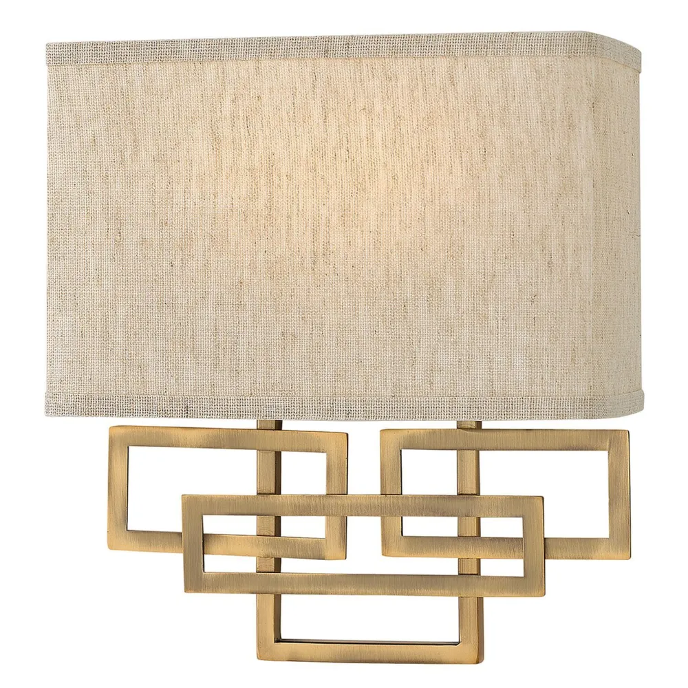 Design Wandlampe in Bronze mit hellem Schirm aus Leinen