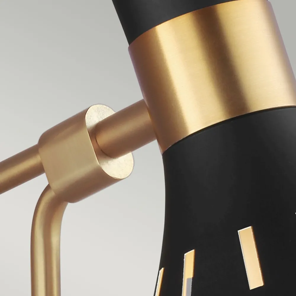 Die Kombination aus glänzendem Messing und mattem Schwarz sorgt für einen besonders stilvollen Look, was aus der Wandlampe einen dekorativen Blickfang macht