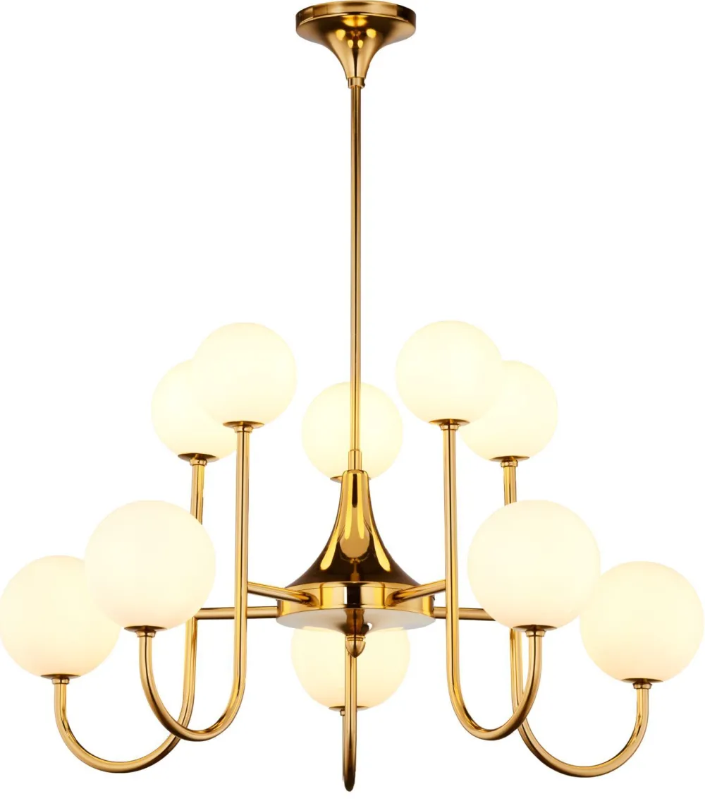 Jugendstil Deckenleuchte aus Metall und Glas in Gold und Weiß