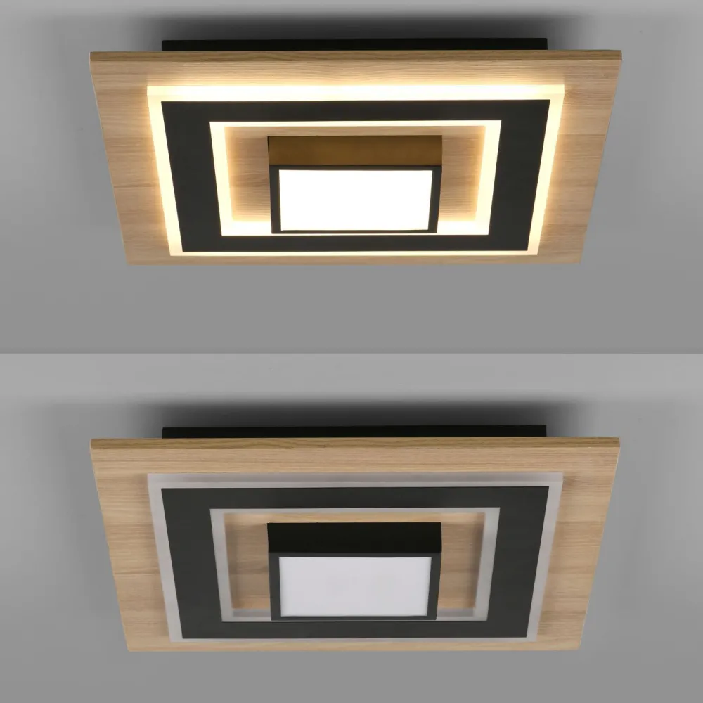 Rustikale LED Deckenleuchte aus Holz und Metall in Schwarz