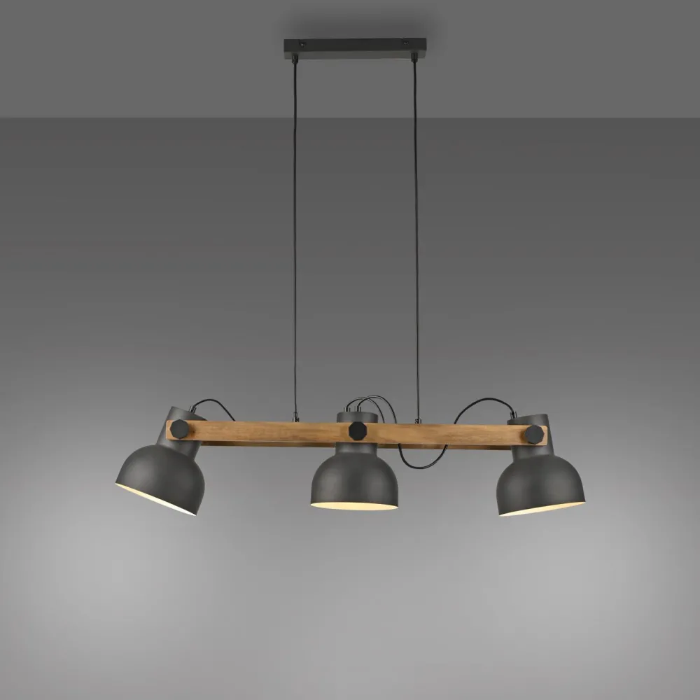 Industrie Hängelampe aus Metall und Holz in Schwarz