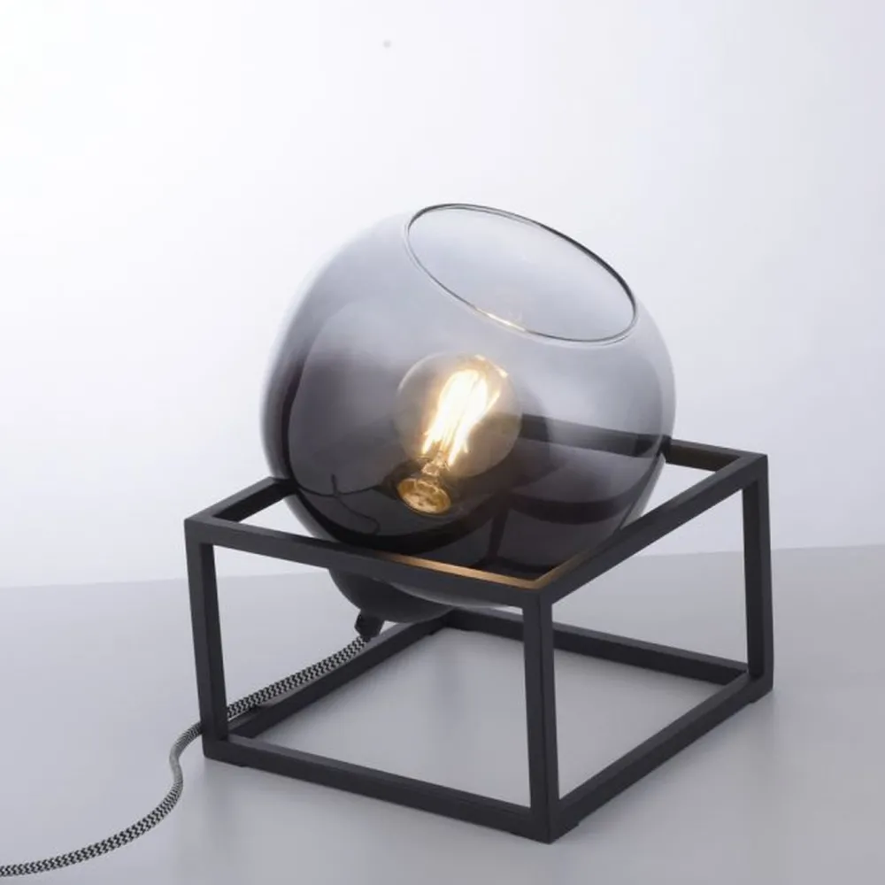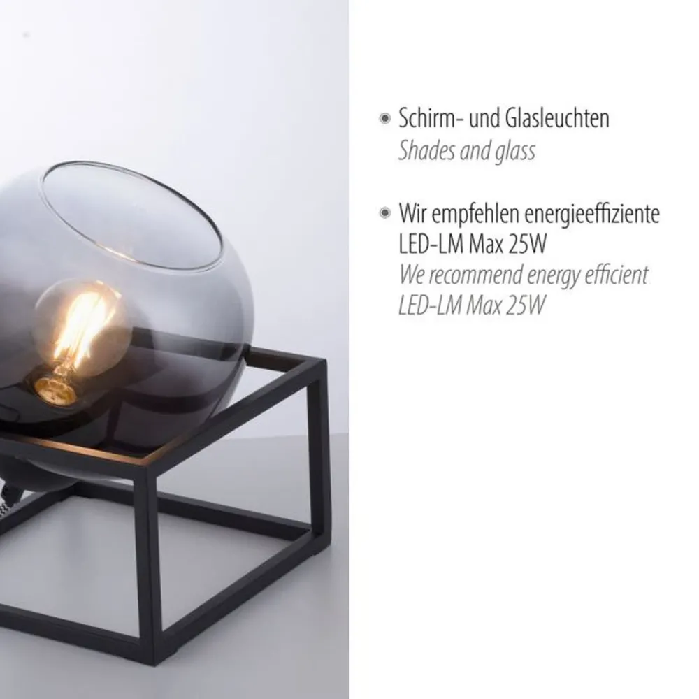 Moderne Tischleuchte aus Metall und Glas in Schwarz