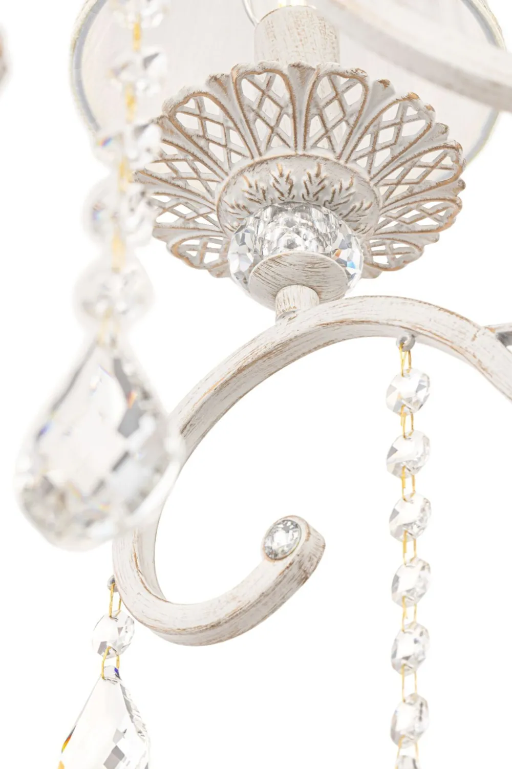Die zarten Lampenschirme und die funkelnden Kristalle verleihen der Pendelleuchte einen romantischen Look – ein echter Hingucker in jedem Raum