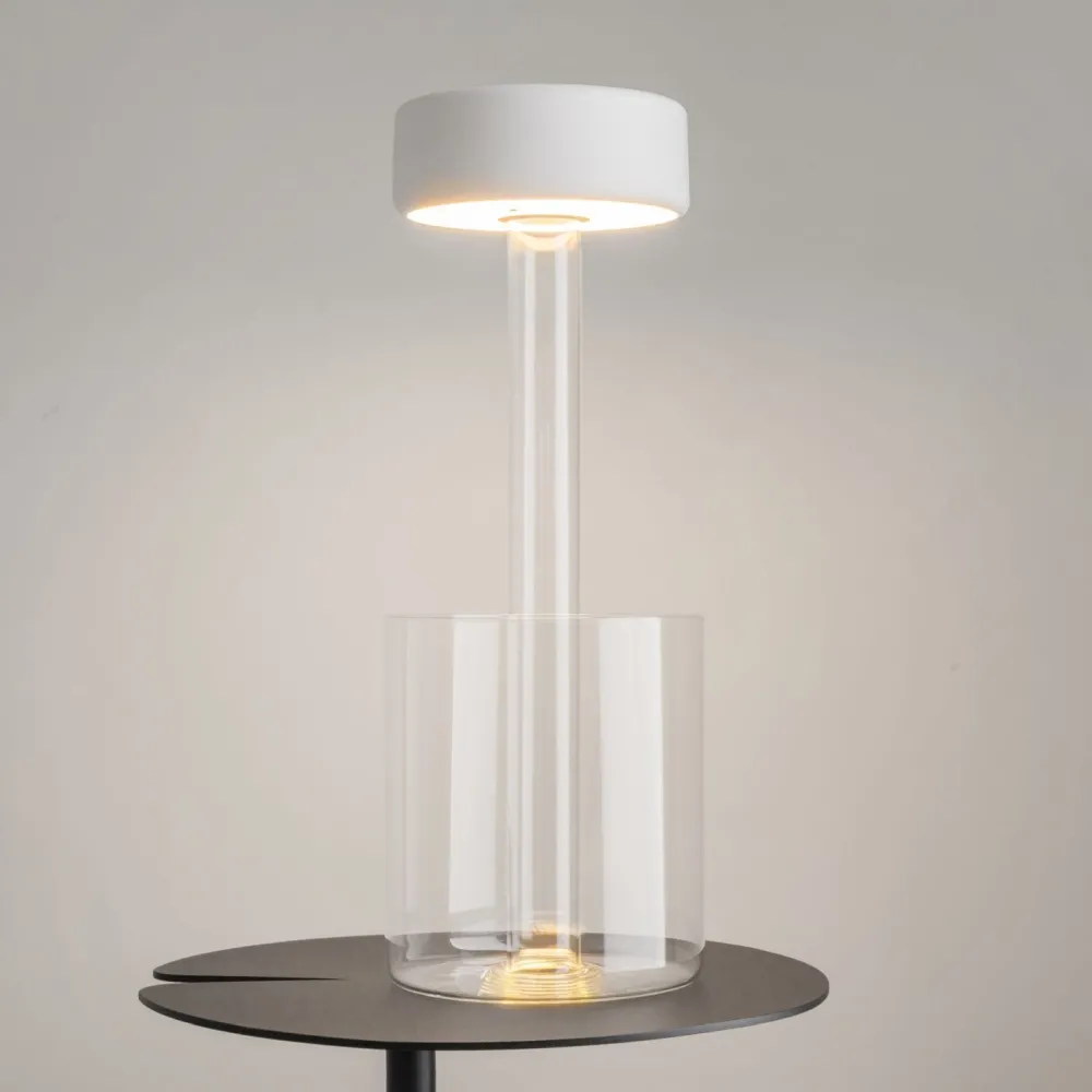 Tragbare LED Akku Tischlampe aus Glas und Metall im modernen Design – keine Kabel, keine Stecker!