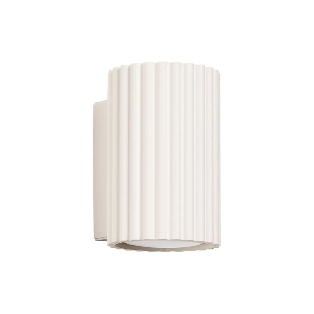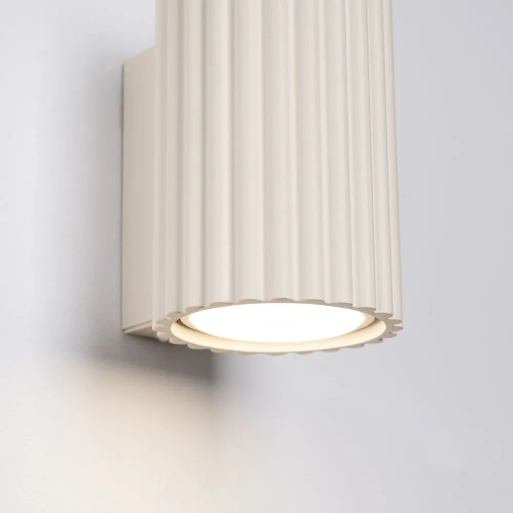 Kompakte Wandlampe aus Aluminium mit besonderem Lampenschirm in hellem Creme