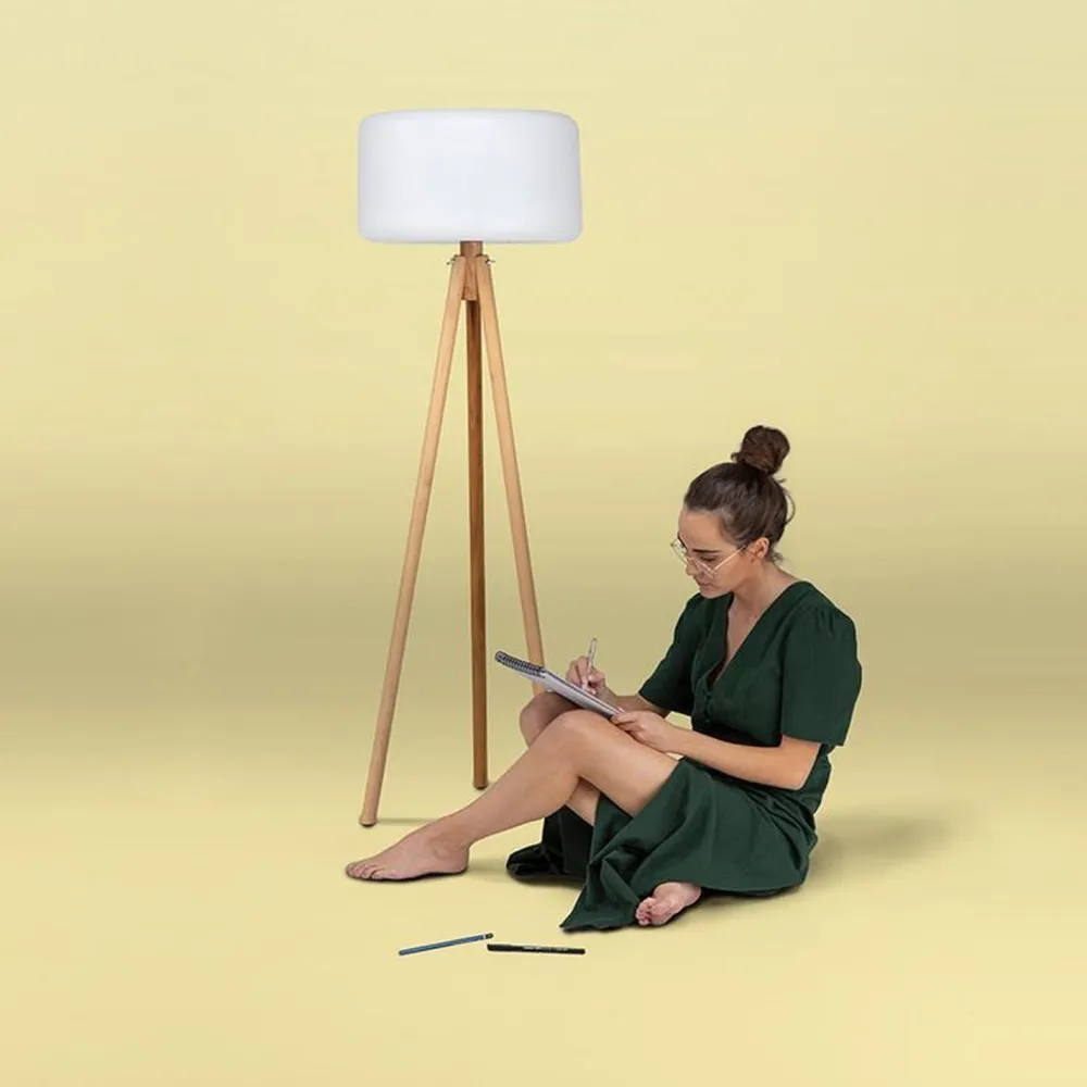 Besonderer Clou: Dank eingebautem Dämmerungssensor schaltet sich die Dreibein Stehleuchte automatisch an, wenn es dunkel wird