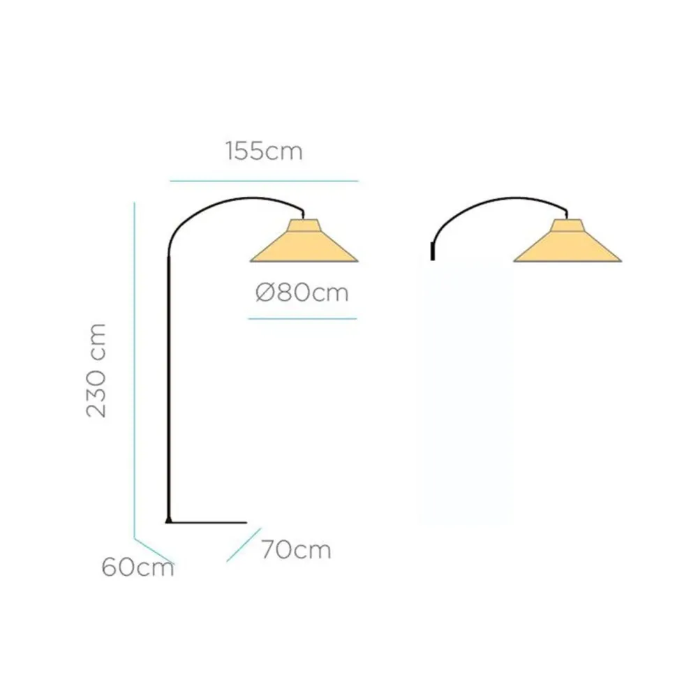 | Maße: | Breite: 800 mm | Höhe: 2300 mm | Länge: 1550 mm | Durchmesser Schirm: 800 mm | Durchmesser Sockel/Wandhalterung: 800 mm | Kabellänge: 3000 mm |