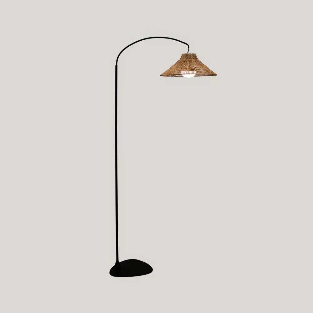 Multifunktionale Außenleuchte mit wohnlichem Lampenschirm aus geflochtenem Seegras und smartem Leuchtmittel