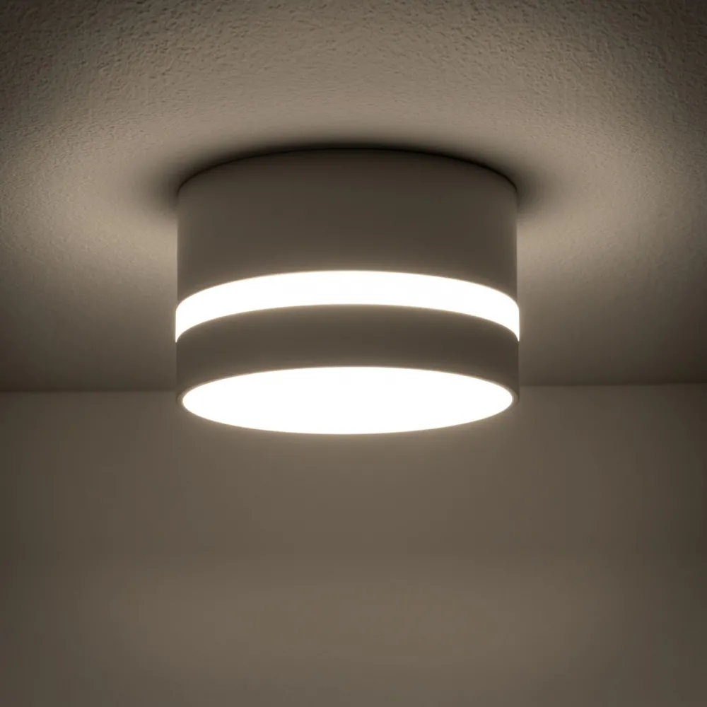 Die runde Deckenlampe sorgt für eine punktuelle Beleuchtung und passt dank ihrer geringen Größe auch in kleine Räume