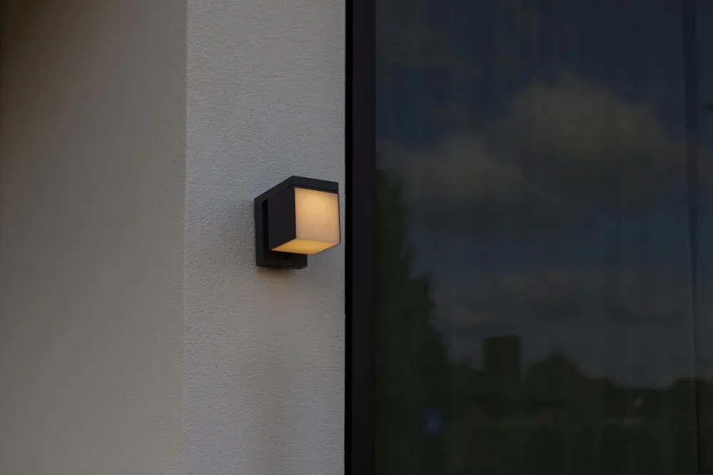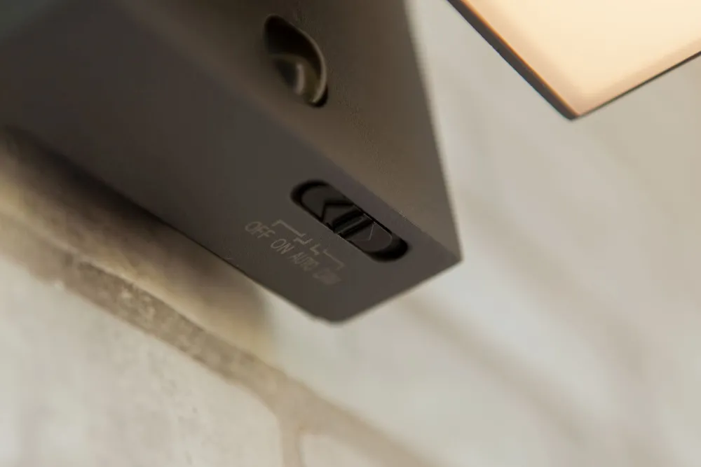 Dank praktischem Bewegungsmelder leuchtet die Wandlampe erst ab Einbruch der Dämmerung